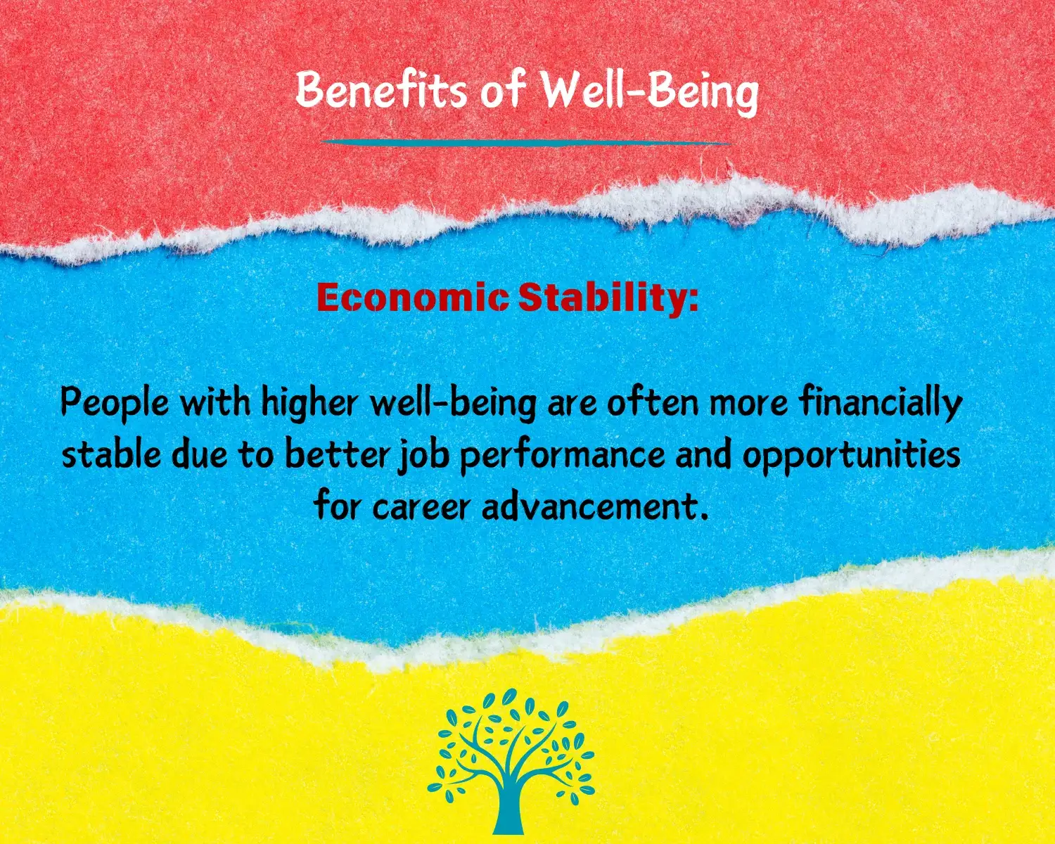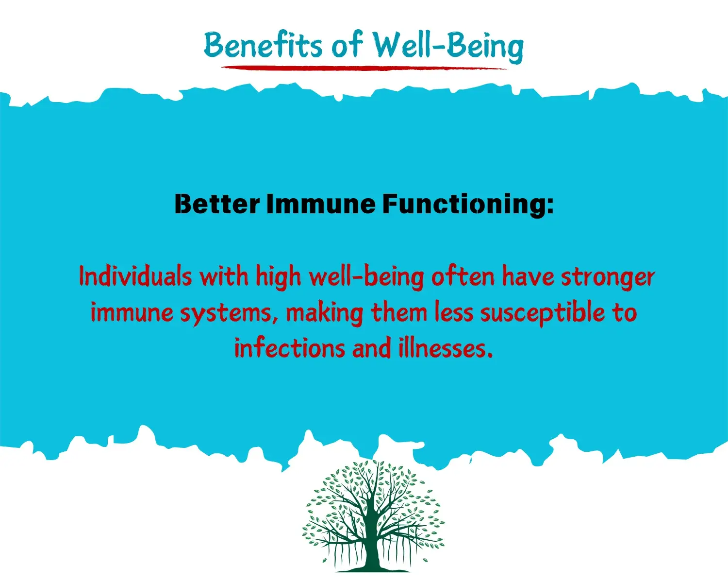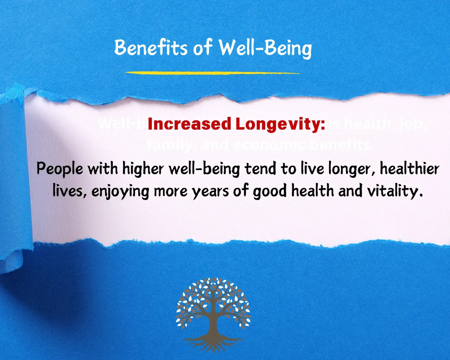 Well-Being is linked to numerous health, job, family, and economic benefits. Decreased Risk of disease Higher levels of well-being are associated with a reduced risk of chronic diseases such as heart disease, diabetes, and hypertension.