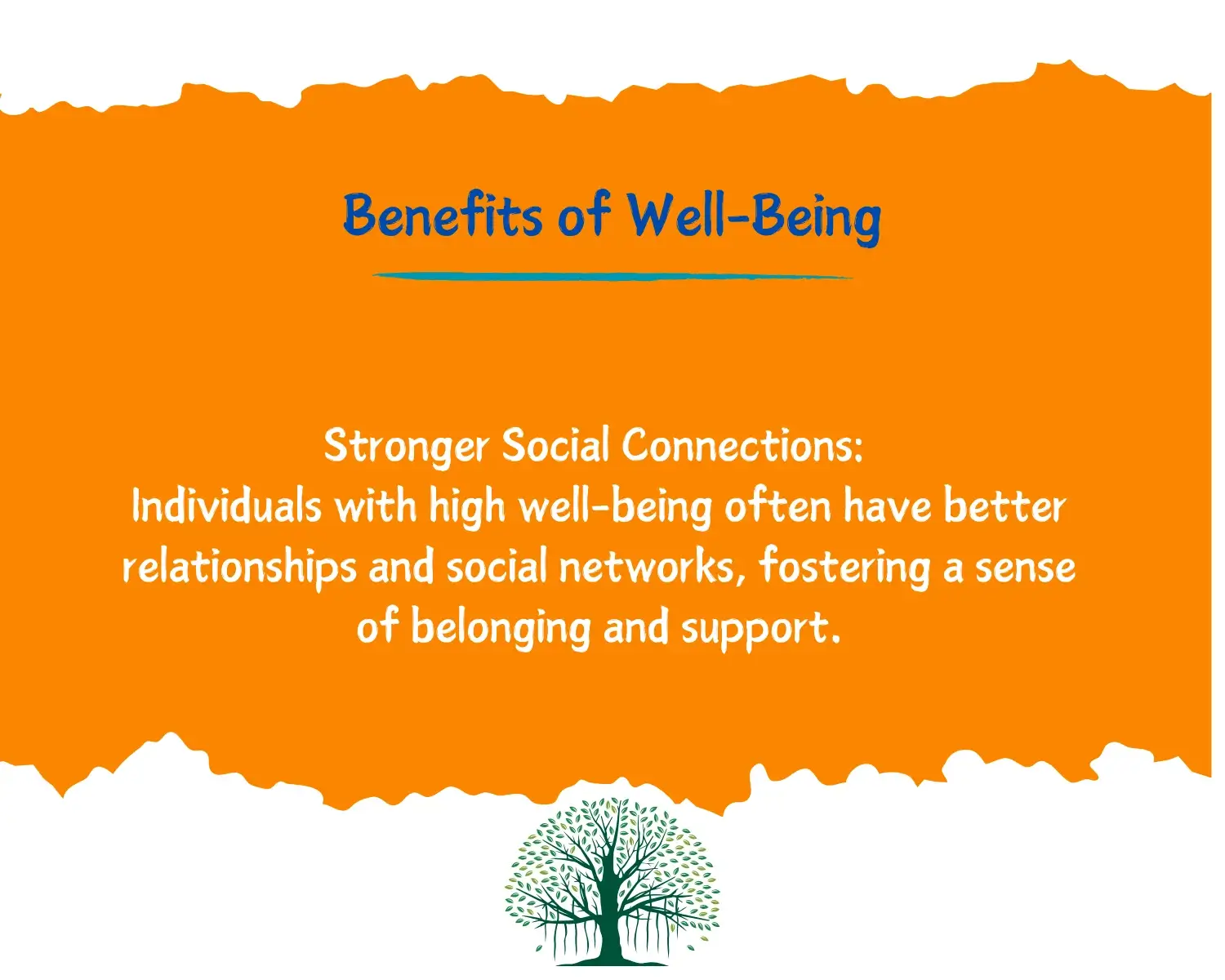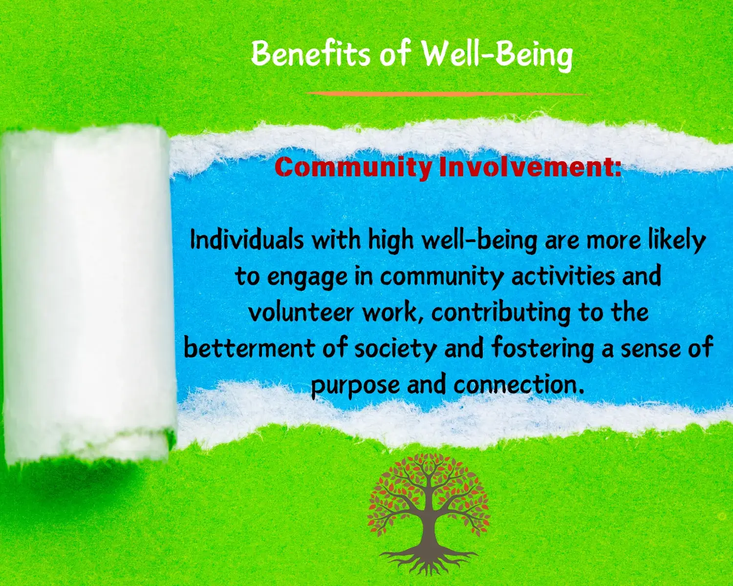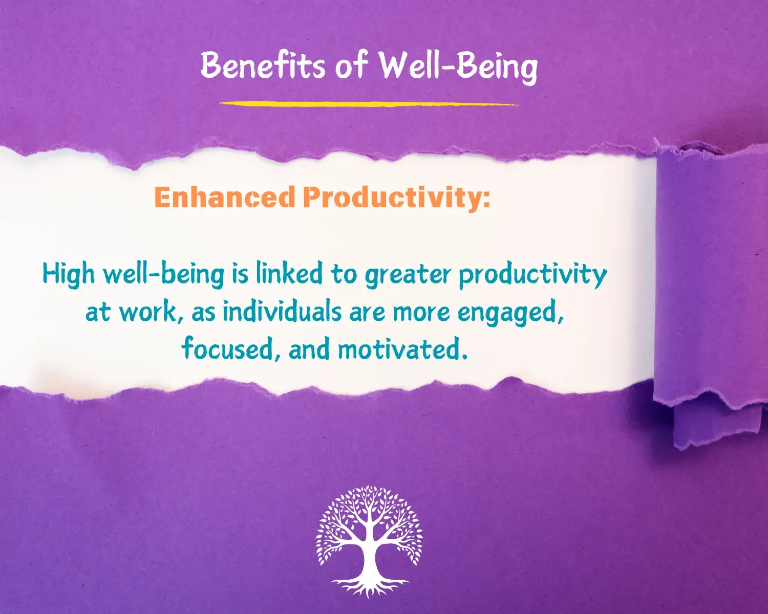 Well-Being is linked to numerous health, job, family, and economic benefits. Decreased Risk of disease Higher levels of well-being are associated with a reduced risk of chronic diseases such as heart disease, diabetes, and hypertension.