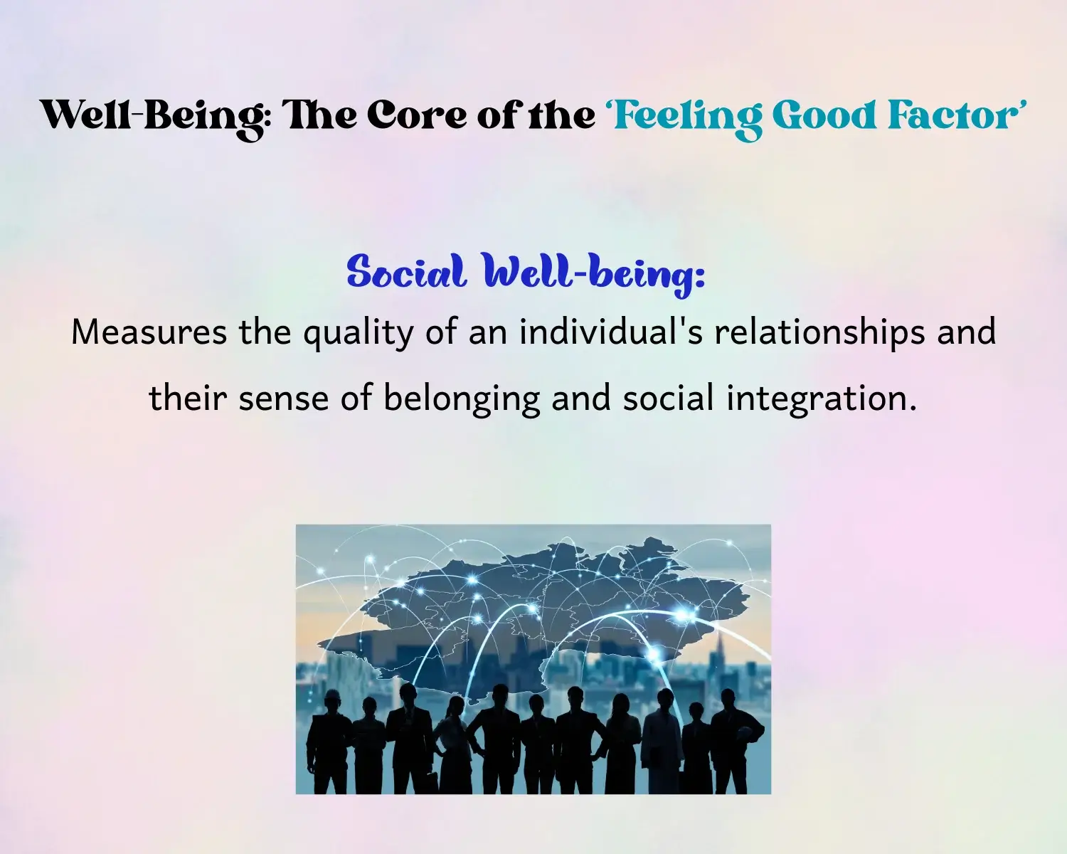 Well-being integrates mental health (mind) and physical health (body), resulting in more holistic approaches to disease prevention and health promotion. Well-being is a valid population outcome measure beyond morbidity, mortality. and economic status, providing insights into how people perceive their lives. Advances in psychology, neuroscience. and measurement theory suggest that well-being can be measured with some degree of accuracy. Research shows that well-being is associated with: These indices provide a comprehensive overview of well-being, capturing a range of factors that contribute to an individual's overall quality of life.